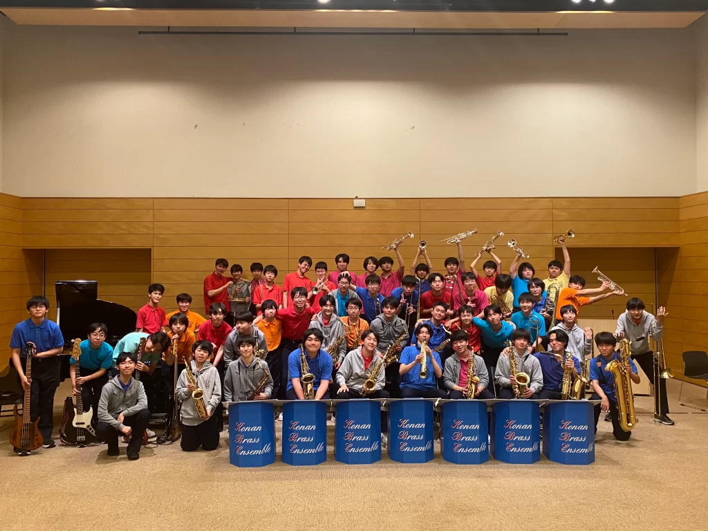 甲南高等学校・中学校ブラスアンサンブル部は、1982年にJazz Bandとして活動を始めました。クラブとして活動する前には少人数の木管アンサンブルでしたが、その後金管楽器などの楽器が加わりBig Bandとなり現在のような大きなクラブとなりました。クラブのモットーは”Be Happy Together”で、お客様と共に楽しめる演奏ができるよう心がけています。KBEは6月の定期演奏会、8月に開催されるJapan Student Jazz Festival、秋の文化祭を目標に活動しています。その他にも毎年多くの演奏活動をさせていただいています。ハワイのLe Jardin Academy、IOLANI SCHOOLと音楽を通じ、国際親善・国際理解を深めるため音楽交歓会を行っています。